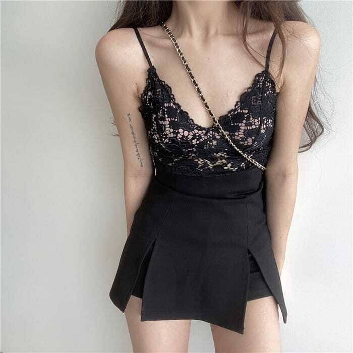 法式性感蕾絲短板背心